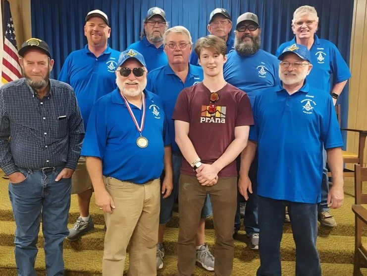 Pictured here are the members of Kinmundy Lodge #398 celebrating Kai's successful return. Featured in the photo are scholarship recipient Kai Howard; his grandfather, Brother David Spencer; the current Worshipful Master, Ed Michael; and Past Master Clayton Keen, who was serving as Master when the scholarship was originally awarded. They are joined by dedicated brothers of the lodge, Jerry Osborne, David Thomson, Steve Lindsey, Tim Yates, Louis Carter and Dale Jahraus. The lodge is honored to have played a part in Kai's academic and personal growth and wishes him the very best in his future pursuits.
